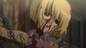 além disto tudo higurashi no naku koro ni tem a famosa cena 'nail ripping' em que uma das personagens (a mion) coloca os dedos numa ferramenta estranha presa a uma mesa para arrancar as unhas. ela acaba por tirar apenas uma.